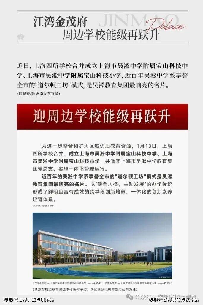 4、优质教育集群,是价值最深厚的“压舱石”当板块内的教育资源通过战略合并与整合实现能级跃升,其带来的不仅是教育选择的优化,更是区域价值的深层加固。优质学校的聚集,始终是资产穿越周期最坚实的保障,为社区提供着持续而稳定的内生动力。上海四所学校合并成上海市吴淞中学附属宝山科技中学、上海市吴淞中学附属宝山科技小学两所重点学校,这将为江湾金茂府的未来价值提供重要支撑。