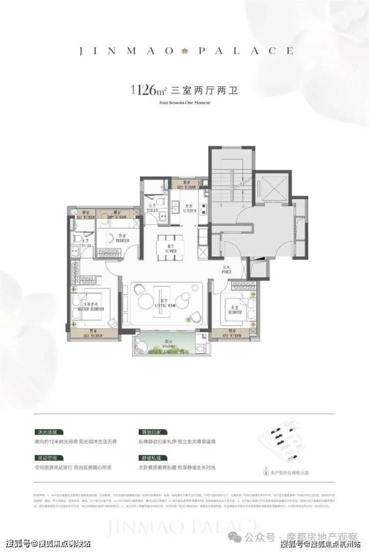 ●建面约126㎡横厅3房:一步到位顶奢3房,全杨浦没有竞品。