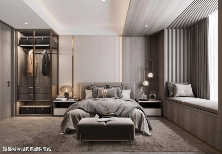 双套房设计,主卧带卫生间+衣帽间,次卧带衣帽间+飘窗,让两代家庭都能拥有自己的私密空间。