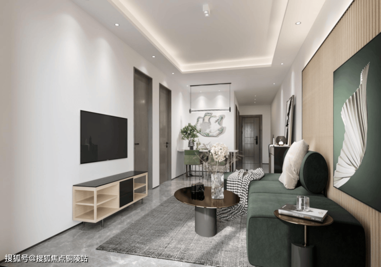 独立的入户玄关,出入皆有生活的仪式感,更方便做细致的收纳分区;客厅、餐厅相互独立,客厅南连宽景阳台,餐厅北连飘窗,让空间得以延展的同时,也让阳台的功能多样化;厨房就近连接餐厅,动线清晰,客餐厅通透明亮。