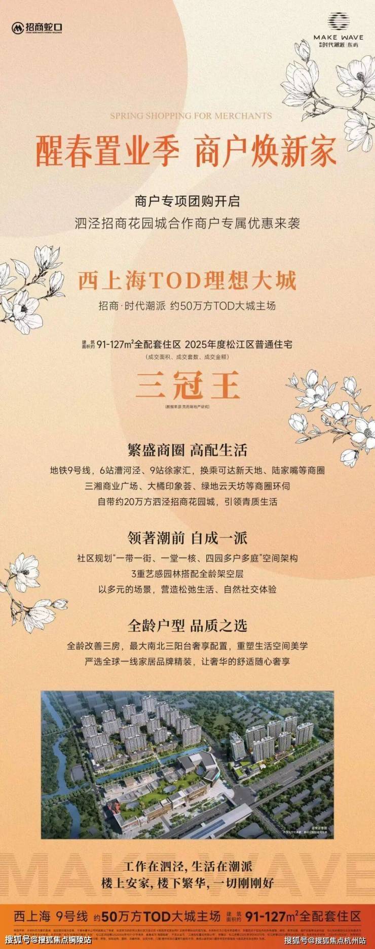 「招商时代潮派」位于松江泗泾,是泗泾板块中位置更好、离地铁更近的项目。