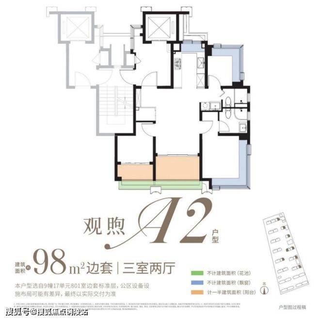 约98㎡3房:类一梯一户、内部飘窗为轻质墙板,后期可自行拓展!双阳台+景观花池是核心亮点(市面双阳台户型起步多为约110㎡),整体附赠约23㎡,是罕见的高实得率精致户型。