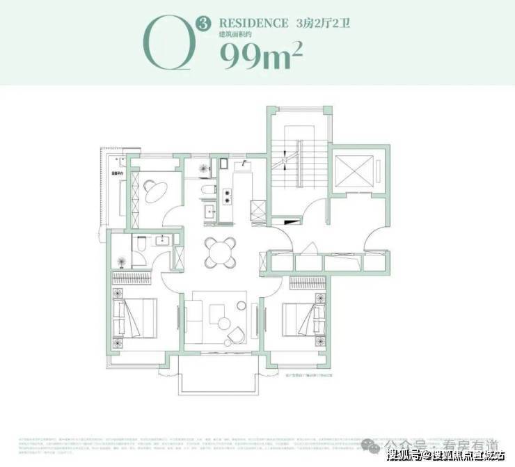 其中建面约99㎡3房在15#,双核心优势加持: