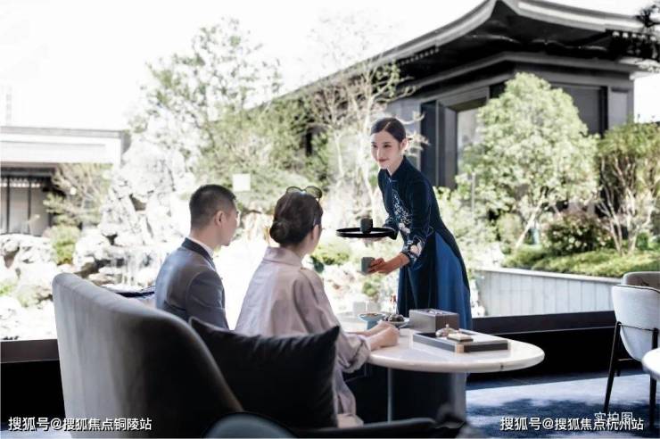 雅致石院与中庭古树相映,植物组团错落有致,营造出清逸山水园林之美,唤醒人们对林荫树下休憩闲聚的场地记忆。