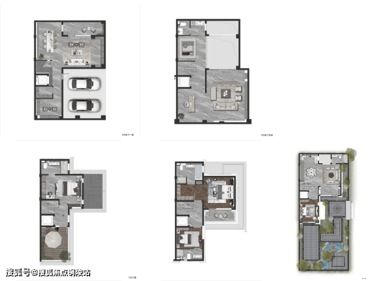 约126㎡的明星户型做到了5套房设计,地下一层、地上三层的空间形态,将空间尺度无限放大。