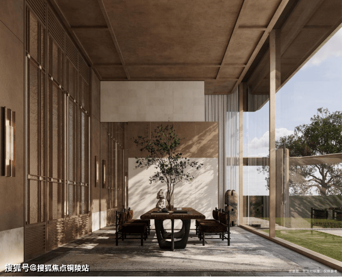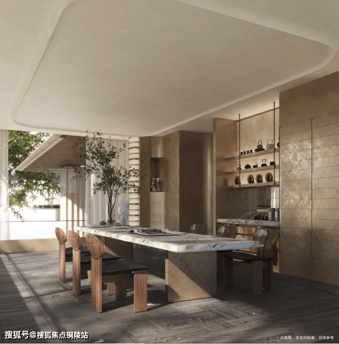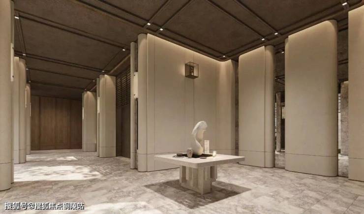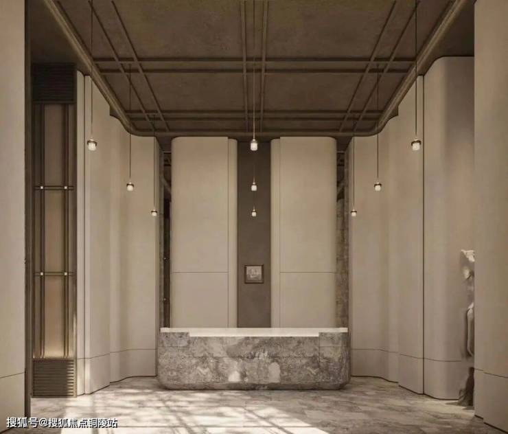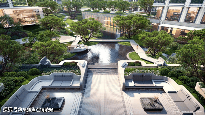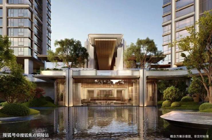 “回归之境”以3500㎡下沉水苑为核心,汇聚会客、泳池、茶室等多功能空间,形成仪式感十足的社区舞台。