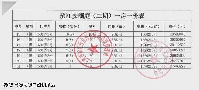 一房一价表: