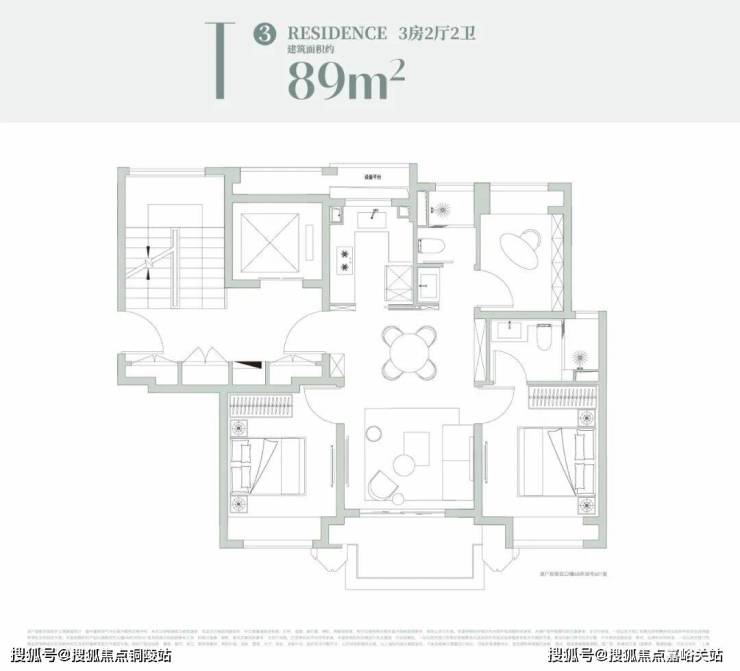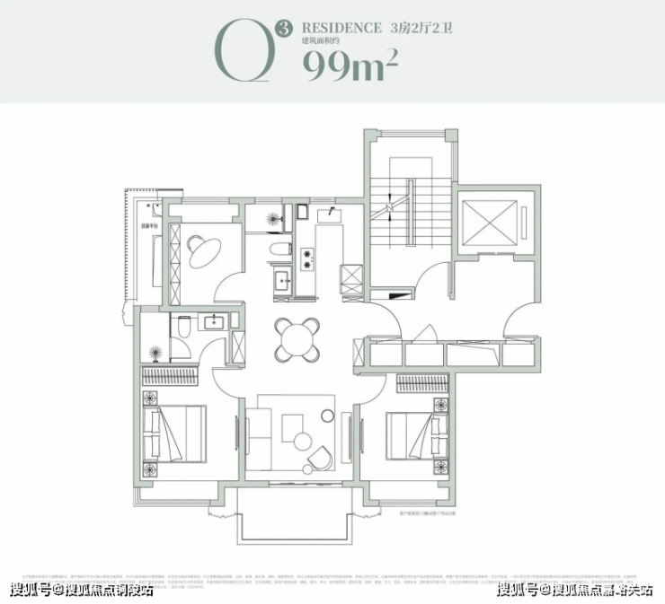 厨房、餐客厅、阳台形成直线通风廊道,南向三开间+宽尺客餐厅,轻松容纳二胎三代家庭的日常;