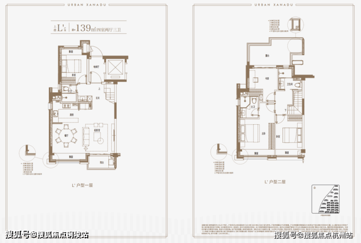 建面约139㎡上叠户型,三层是会客区,四层是居住区,阳台+露台+多个飘窗设计,附加空间非常大,在别墅类产品中实属罕见!