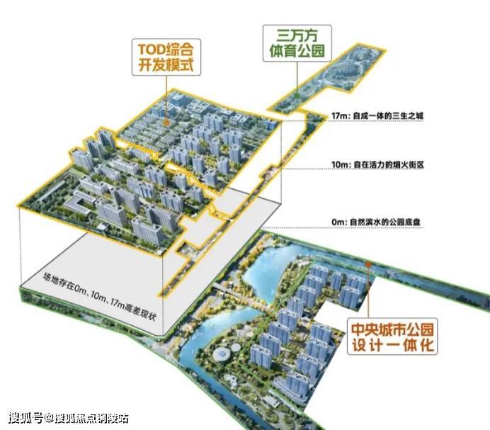 约三万方体育公园 将运动基因与公园森态完美融合!运动不再是孤零零的某一处特定场地,而是通过公园里的多重活力环进行有机串联,成为百万中心大城密不可分的一部分!