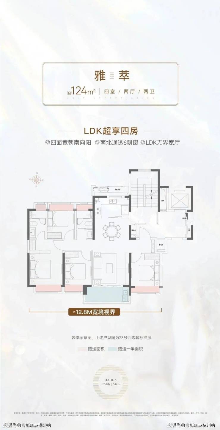 建面约124㎡的4房2卫户型,通常来说是紧凑型的户型。
