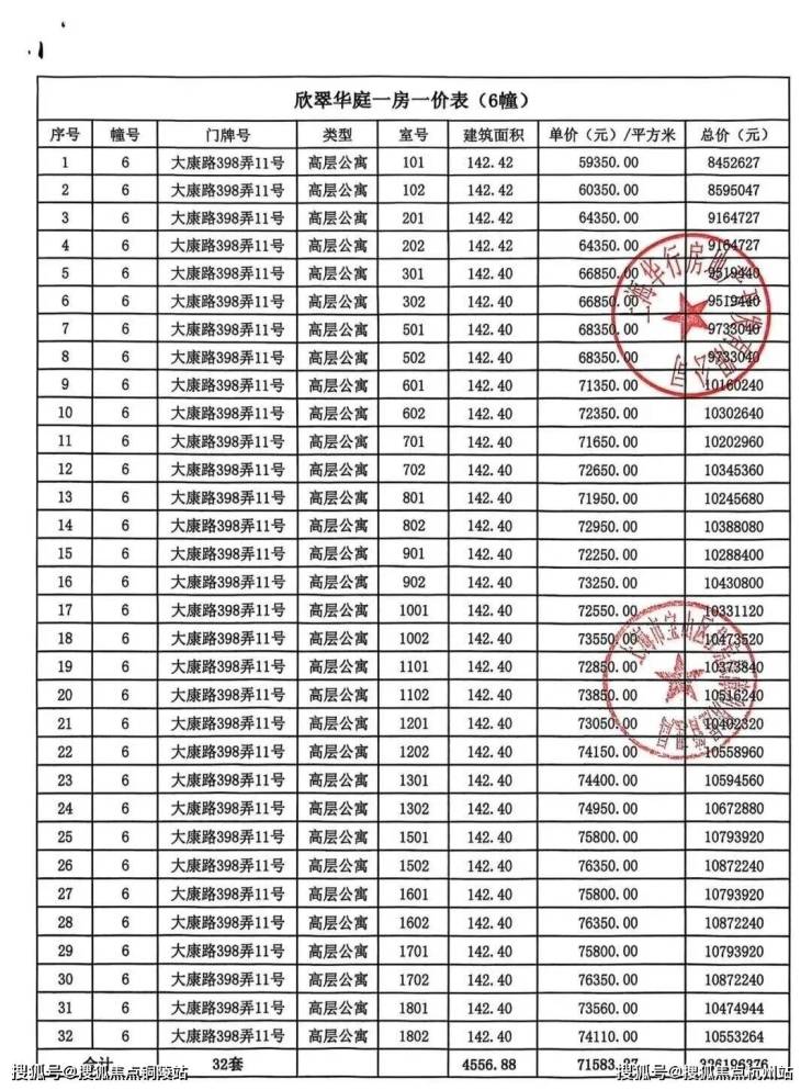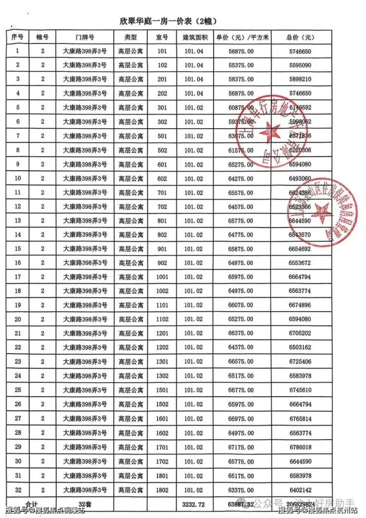 大华公园柏翠项目一房一价表▼