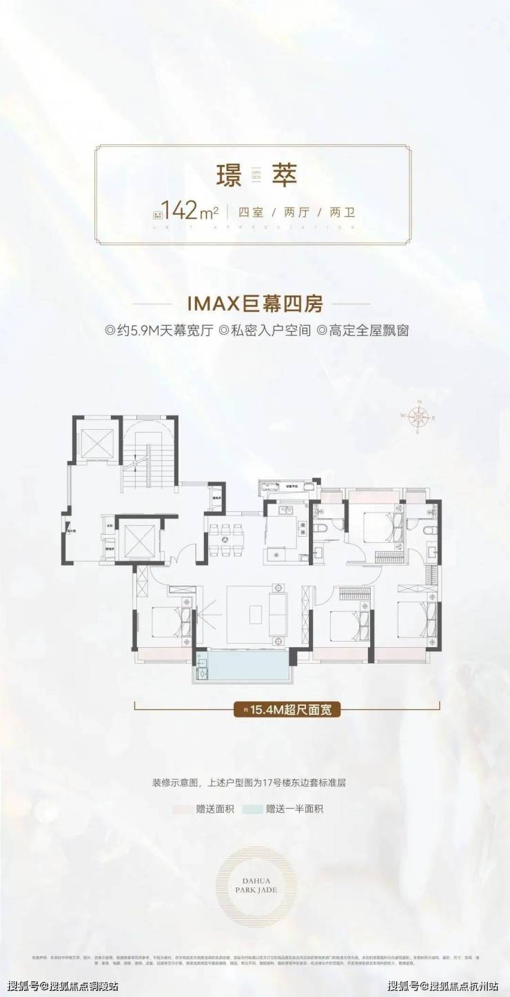 真正一步到位的改善型4房产品,大横厅的设计, 四开间朝南+大横厅,约15.4米的南向面宽堪比别墅。
