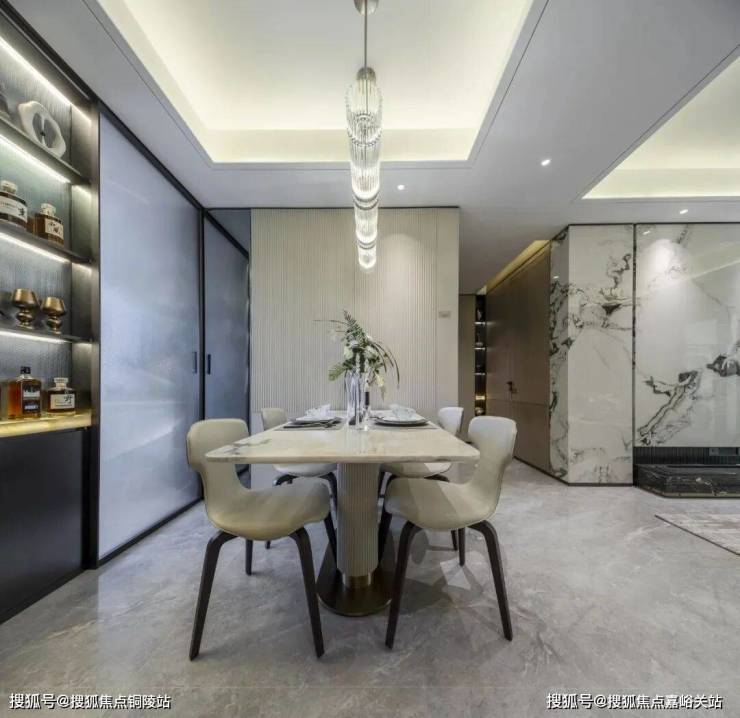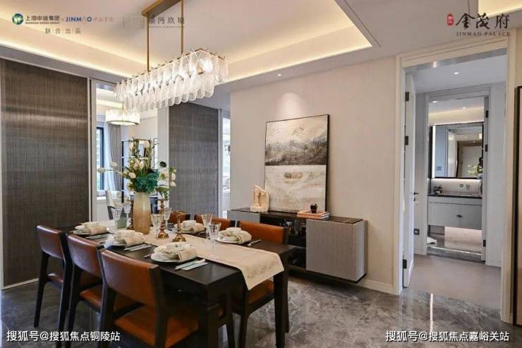 ✅张江金茂府官方售楼处电话:400-8080-420餐厅空间相当阔绰,可放置四人桌或六人桌,尺度之大在600万级产品中非常难得一见。
