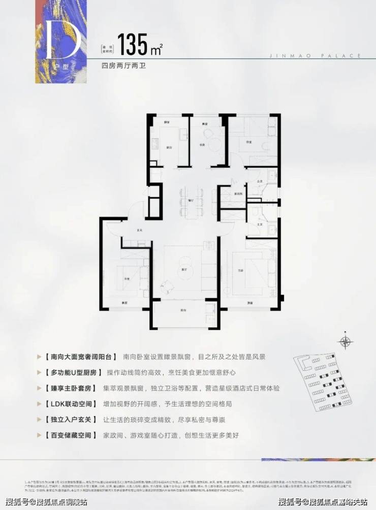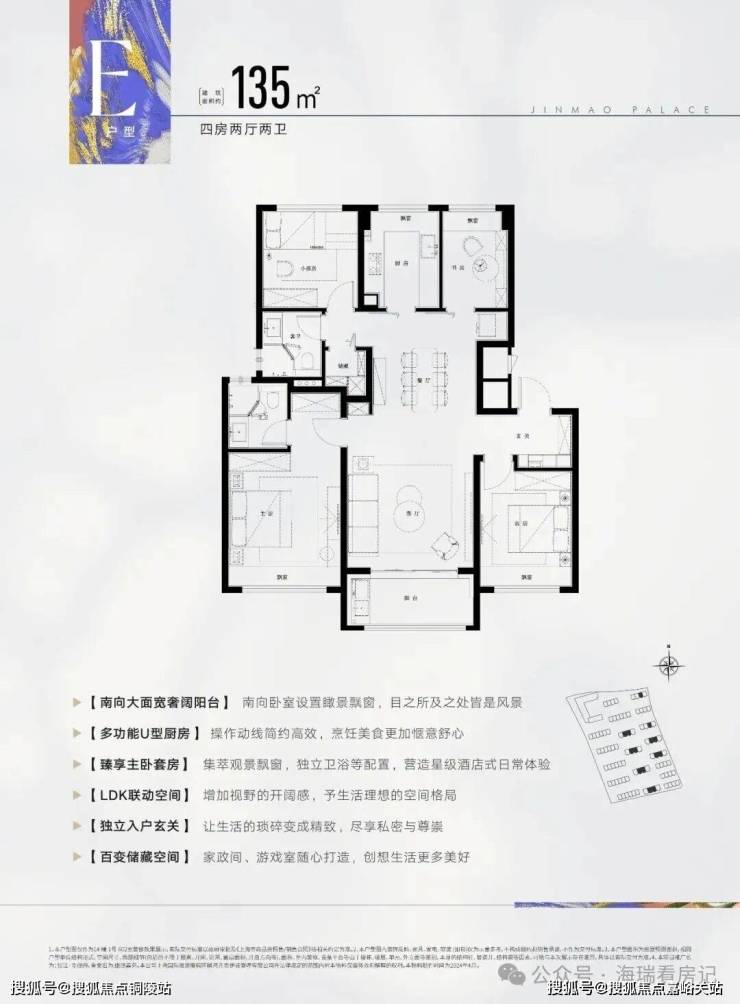 ✅张江金茂府官方售楼处电话:400-8080-420建筑面积约138㎡4房2厅2卫,做到了3开间朝南+主卧套房设计+南卧带飘窗+卫生间干湿分离,空间更加阔绰!