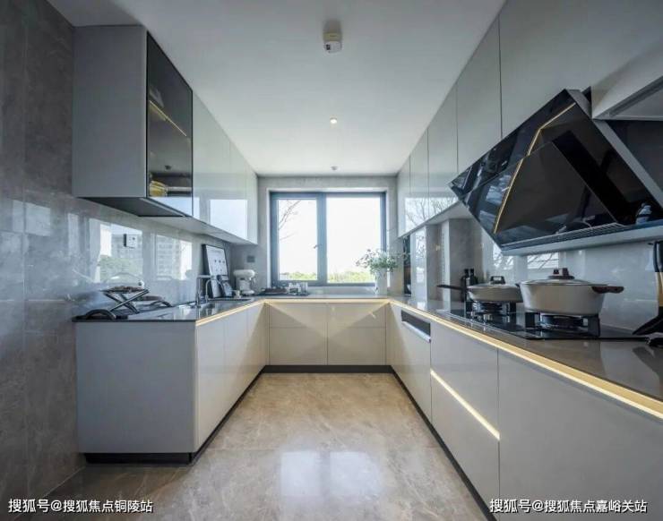 U形厨房设计,动线合理,煎炒烹炸空间充足。