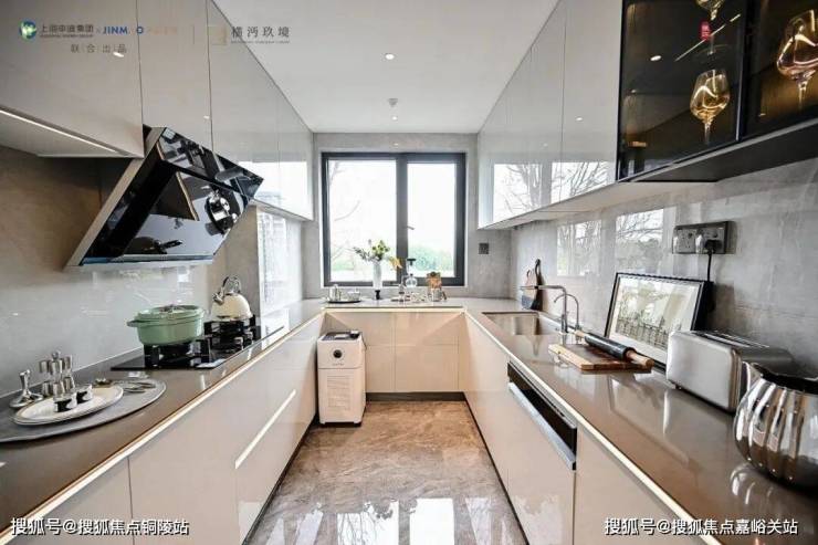 ✅张江金茂府官方售楼处电话:400-8080-420U型厨房带飘窗的设计,左侧预留了双开门冰箱位置,让整个空间的利用率更高。交付标准相当奢豪华,配置西门子的灶台、油烟机、洗碗机高配三件套,弗兰卡的水槽及抽拉式龙头,石英石台面,欧派定制柜柜体,部分金茂定制岩板的墙面等。