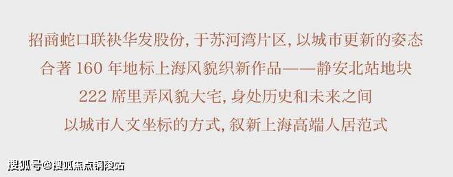 华发股份联袂招商蛇口,于苏河风貌区,成就城市风貌的深度共鸣。里市交织下,222席风貌大宅,原真上海风貌商业。以城市节点之姿,重新定义:风格之上,风貌之间。