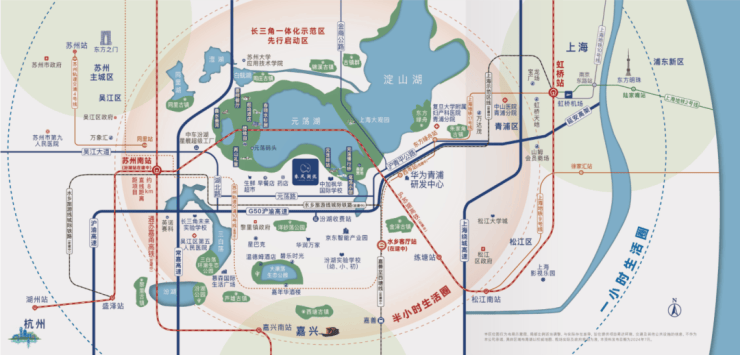 文旅配套:地处江南腹心,周边不仅有周庄、黎里、西塘、同里、朱家角等10余个古镇,还有元荡湖生态公园、元荡驿站、鼋荡小馆、曲水善湾、上海大观园等休闲生活配套。