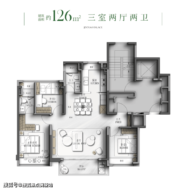 - 126㎡三房两卫(横厅设计)