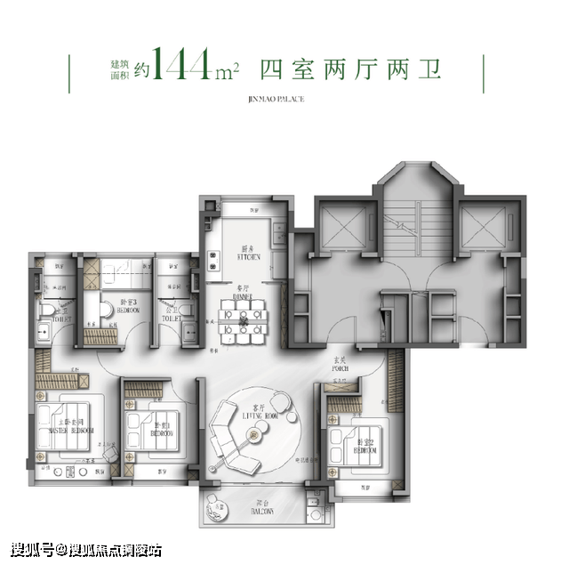 - 144㎡四房两卫(7个飘窗空间)