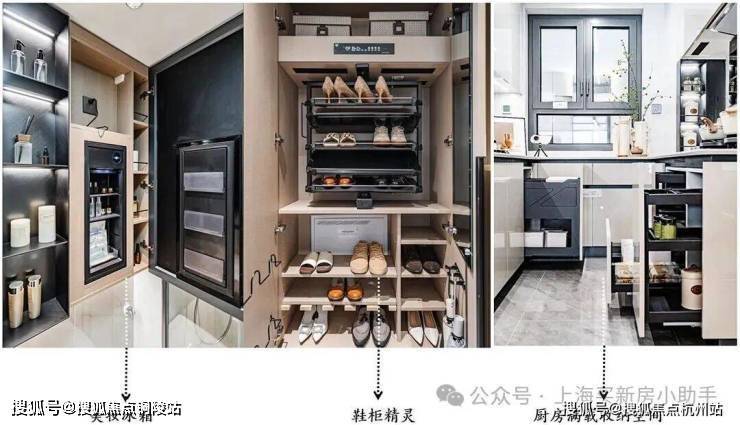 还有室内越级Pro的精睿收纳、超配臻装的品牌用材等空间革新,重塑家庭生活的精神尺度!特别是入户部分的玄关柜、墙柜、餐边柜等,都做了整排一体化,前期同样使用大受好评的S墙设计依旧得到延续,冰箱可以平整嵌入,大方美观。