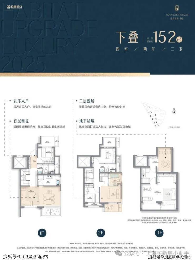 叠墅越级|约146-152㎡水岸墅居√下叠约152㎡海派水岸世家院邸餐客厅无界互动,串联家庭社交场主卧星幕阳台,晨光暮色皆成诗意背景挑高私属地下室,让个人的品味与个性在此尽情施展