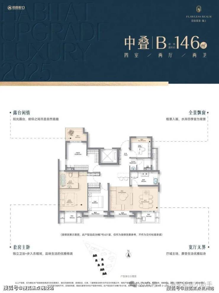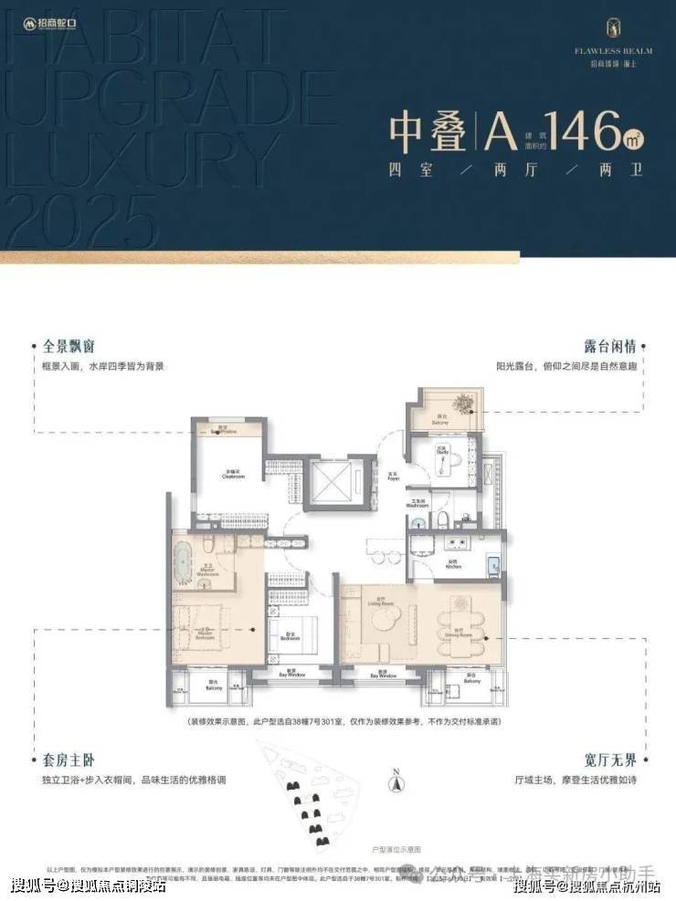 √中叠约146㎡四房大平层空中花园峯范场餐厨客书房无界贯通,形成超级家庭交互场域南向四开间引光入室,全景飘窗框画水岸四季套房主卧,舒享自在的私人场域