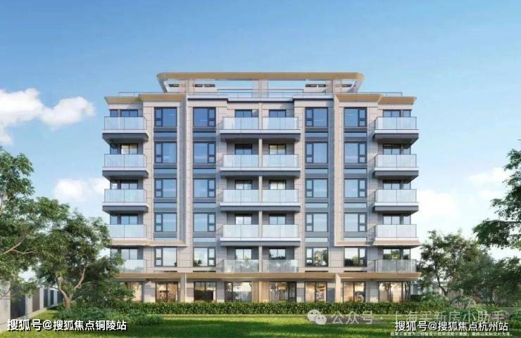 立面建筑上,招商臻境转译武康大楼和绿房子的曲线,设计了微弧阳台。首三层设置了贝金米黄石材基座,层间运用银白色和仿木纹色金属装饰线条,顶部设计了干净利落的玻璃塔冠。提升的窗地比和种种材料交织融合成独属于现代海派臻系的立面特色。