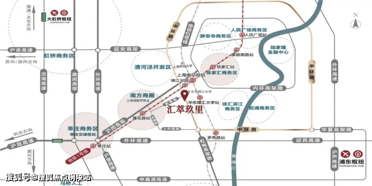 汇萃玖里坐落闵行与徐汇区主城的交界的黄金中环地带,中环上中西路下匝口,虹梅南路与益梅路交汇处、东至虹梅南路(中环高架)、南至北潮港、北至益梅路。