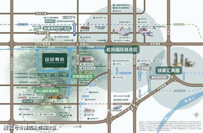 项目地处大虹桥生活圈与赵巷国际别墅区交汇核心,近地铁9号线佘山站,自驾25分钟直达虹桥枢纽。周边商业、教育、医疗资源丰富,步行7分钟至山姆会员店,3公里内覆盖佘山外国语实验学校、协和双语学校等优质教育资源,6公里达松江中心医院(二甲)。社区内部打造约3万㎡中央景观带,配备滨水步道、全龄活动空间及600米健身环线,提供24小时智能安保与国贸自持物业服务。