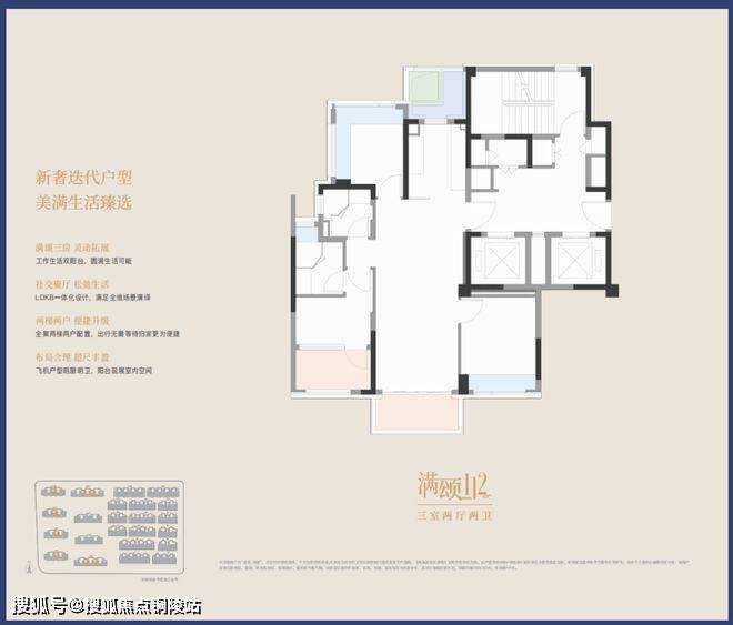 建面约112㎡三室两厅两卫户型: