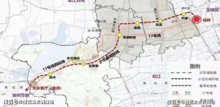 上海示范区线开工仪式于7月13日举行。线路途经青浦区、闵行区,全长49.122公里,建设工期6年。途径芳乐路、徐乐北路、赵重公路、华青路、青浦新城、朱家角、西岑、水乡客厅8个站点。