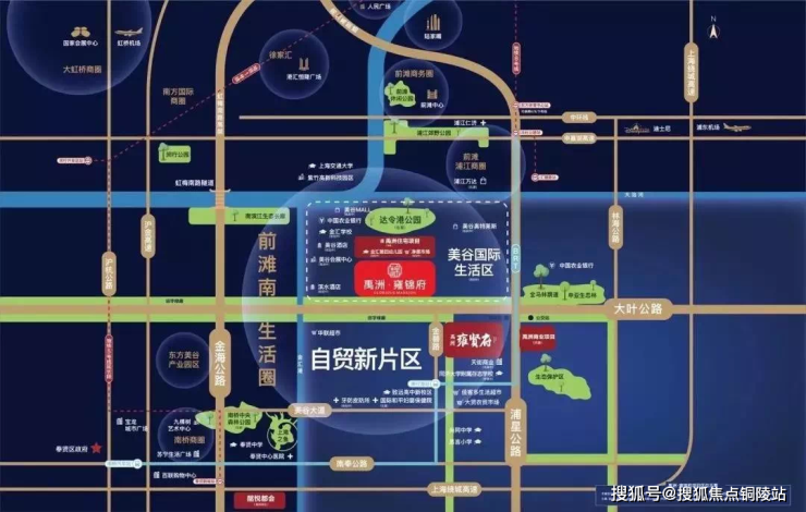 在前滩辐射圈内,目前前滩版块均价约8.5W/㎡、周康版块均价约5.5W/㎡、浦江版块均价约6.0W/㎡、莘庄版块均价约7.0W/㎡左右、而金汇版块目前均价才约3.3W/㎡,属于正真的价值洼地。
