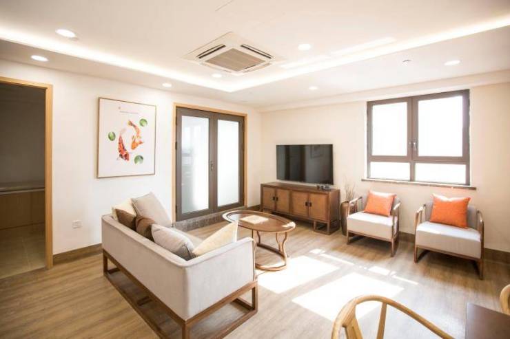 设施特色:接待厅、多功能餐厅暨活动区、康复训练区、综合照护工作室、助浴区、城市客厅、多功能阅读休闲区、托养住宿区、配餐区、户外休闲露台、花园;中央空调系统、无障碍系统、视频监控、数字电视、消防安全设施、床头卫生间紧急呼叫、高科技夜间感应灯、离床报警器、国外进口高端电动护理床、医疗护理床、医疗供氧系统、无线对讲、太阳能热水、智能新风系统、环境监测。