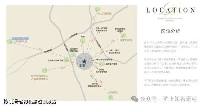 距离虹桥交通枢纽6.5公里左右,出差便利!产业、交通、配套齐聚,且周边就是古北壹号、古北臻园,圈层纯粹!