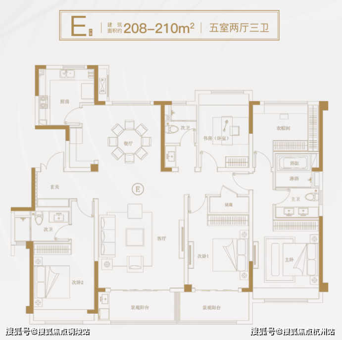 主力:建面123-210㎡三至五房,纯改善户型,适配二胎 / 三代同堂家庭。