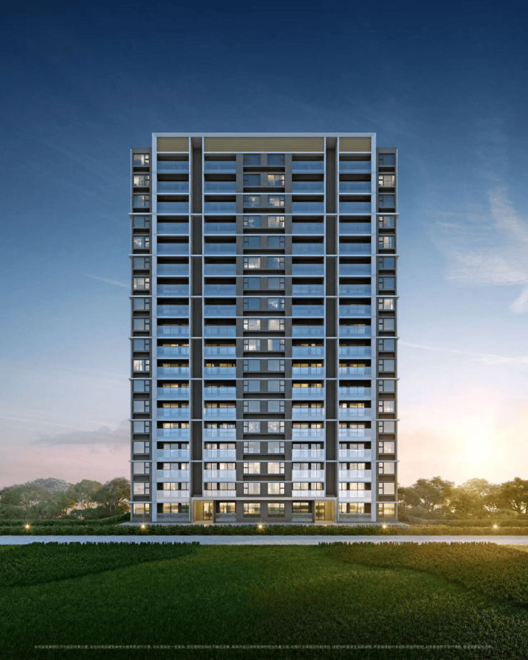 【华发·海上都荟】建筑外立面的设计上采用了现代设计风格,打造现代简洁风格的高层立面形象,设计立足于材料和色彩的种族与调和,建筑与场所形成一种动态的和谐,摒弃了过于复杂的肌理和装饰,简化了线条,兼容华贵典雅与时尚现代感。