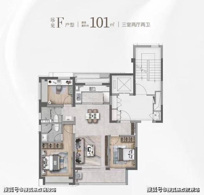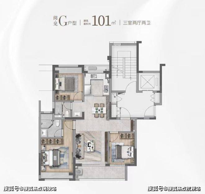 建面约101㎡的F和G户型都是市面上备受认可的飞机经典款户型。