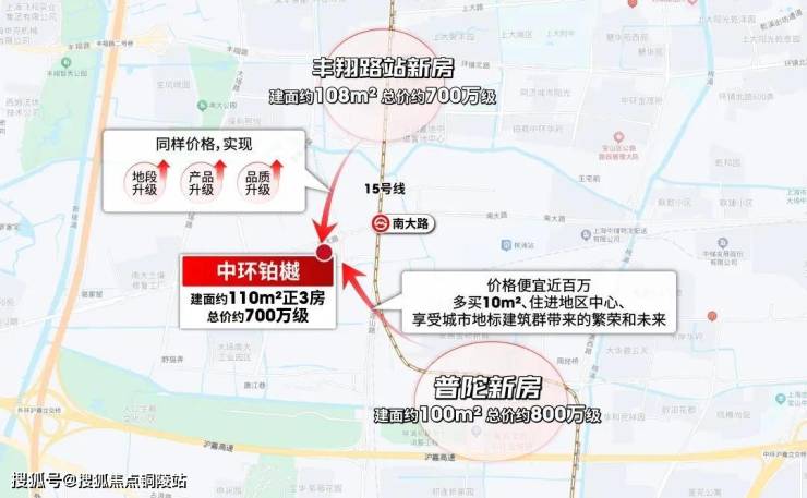而一旦买到中环铂樾,你将享受到的地段是:距离南大路站直线约300米真地铁房,上车后1站8万+桃浦、5站11万+真如、7站约14万+内环。