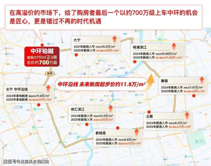最重要的是,这个700万级诞生的节点,正是上海中环沿线高溢价率新房层出的市场,除了南大这个“处于价值爆发前夜”的原始股外,其余地区的新房价格都在飙升。