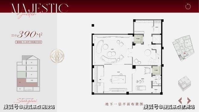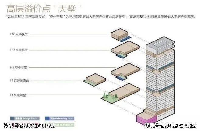 叠拼面积段约195-310㎡,分为1-2F下叠、3、4、5F为中间的平层面积236㎡,6-7F为上叠,计56套。