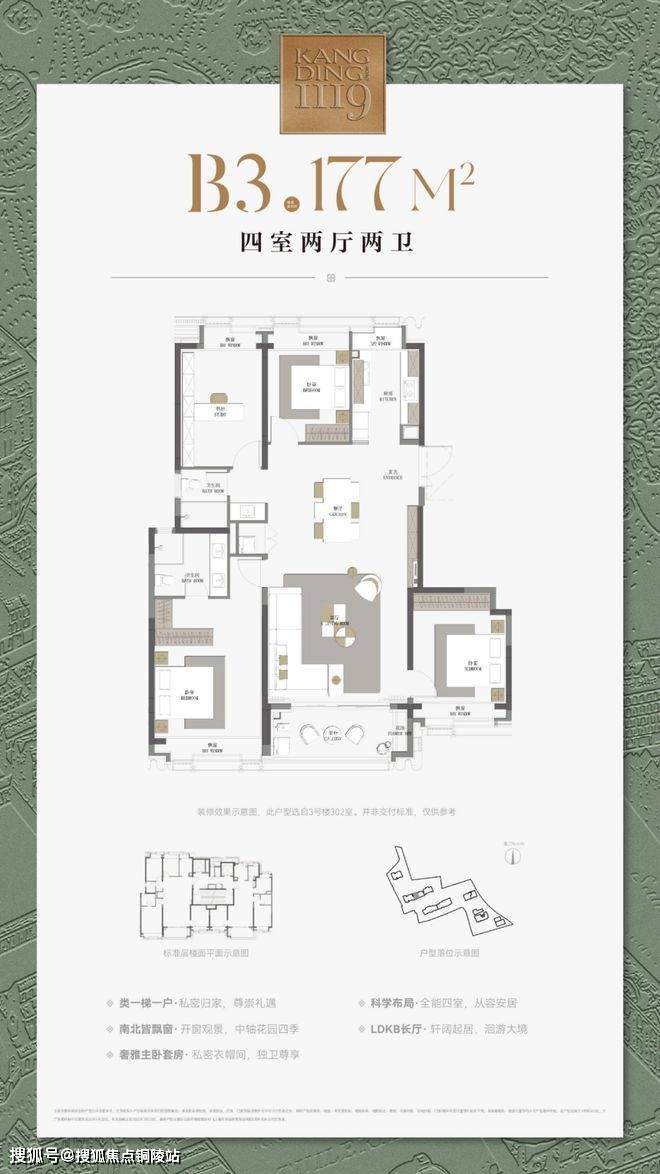 最重要的是,康定壹拾玖售楼处电话:400-9699-334✨【官方认证】✅✅✅这建面约177㎡4房不仅仅是方正,更是飞机户型,三开间朝南+南北通透+无走道的浪费,整个户型相当正气。