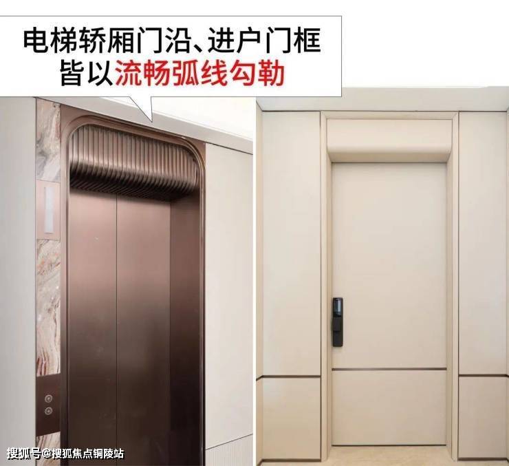 电梯轿厢门沿、进户门框皆以流畅弧线勾勒,为业主日常等电梯和归家增添几分优雅。