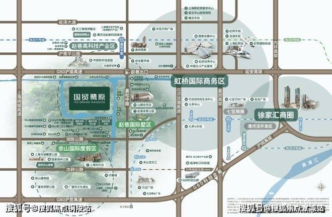 项目真正的邻居是赵巷国际别墅区,这里有绿城玫瑰园、万科红郡等低密社区。这种区位让它同时拥有了两种气质:东侧接收大虹桥商务中心的产业辐射,西面则紧邻佘山国家旅游度假区的生态资源。