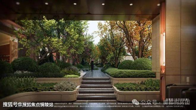 景观方面,项目将外部三大公园与社区内部完全融合,最终形成了“一带两轴三庭”的沉浸式景观结构。