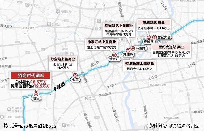 6站漕河泾 9站徐家汇9号线泗泾站新一代超级TOD自带商业,总体量约18.5万方纯商业达到了约12.5万方与地铁商场仅约200米超高配装标「招商时代潮派」