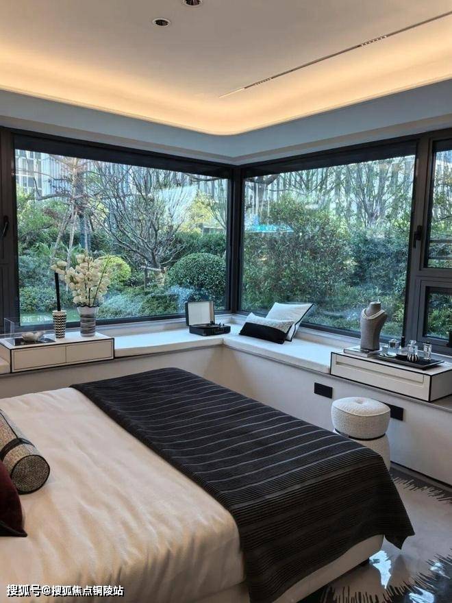 更为难得的是,该户型标配了全屋飘窗,主卧更是拥有270°转角飘窗,拓宽室内景观视野的同时,增加了实际空间使用率,加上三玻两腔系统窗隔音,在欣赏窗外景色的同时,也不会被噪音打扰。