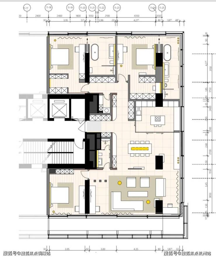 传承包豪斯创始人Walter Adolph Georg Gropius(瓦尔特·格罗皮乌斯)“框架结构”理念,将惯用于办公楼的“厚板框架结构”革新应用于住宅中,真正实现大平层布局,自由分割户型。