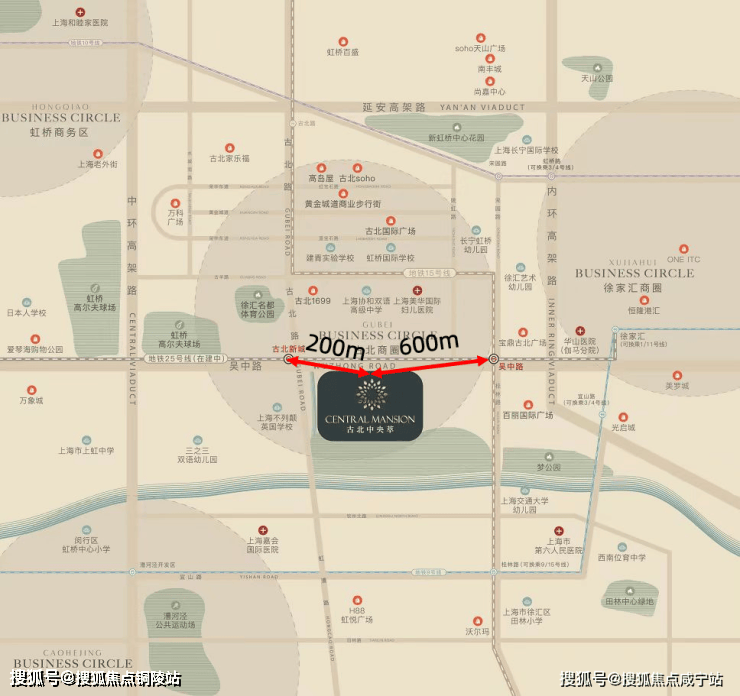 是纯正地铁盘,双轨交环绕!与15号线吴中路站直线距离仅约600米,与25号线(部分在建)古北新城站直线距离仅约200米。